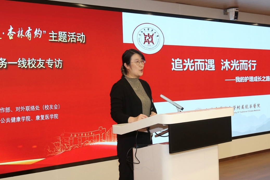 2007届护理专业校友孙秋子是学校第一届护理本科学生,她用十余年坚守书写了“追光而遇,沐光而行”的成长篇章。如今身为学校附属龙华医院护理部副主任、副主任护师、硕士研究生导师的她,从初入校园对中医护理的懵懂好奇,到赴美国宾夕法尼亚大学访学深耕,再到牵头中医护理学科建设,生动诠释了护理事业“关乎生命、关乎爱、关乎传承”的崇高内涵。她分享了从临床一线到学科管理的进阶之路,细数了龙华医院护理部在国家中医药管理局重点专科建设、中医护理国际传播、循证护理实践等方面的丰硕成果,并以“一颗人文心、厚实的专业、敏锐的感官”等“好护士十大特质”,为学弟学妹指明了成长方向。