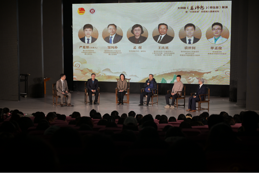 在圆桌论坛环节,孟煜、裘沛然名医工作室负责人王庆其教授、工作室成员邹纯朴教授、裘沛然之孙裘世轲副主任医师,以及剧中裘沛然饰演者单孟俊主任医师受邀出席,与现场师生展开对话。嘉宾们围绕学校“大思政课”建设、学科发展、学术传承与创新等议题,结合个人从医从教经历与时代使命,分享了深刻见解与实践感悟。本次交流进一步深化了师生对“大医精诚”精神内涵的理解,也激发了大家在新时代中医药事业发展中的责任感与方向感。