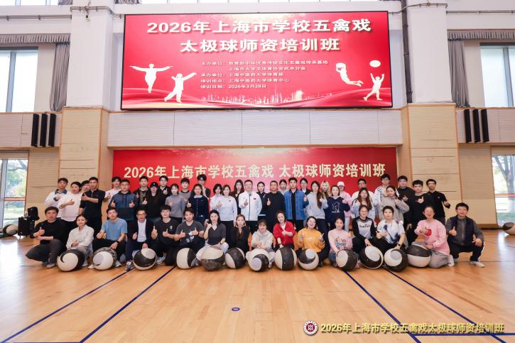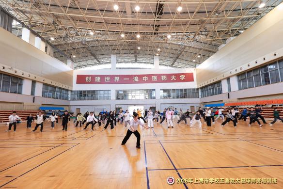 为深入贯彻《教育强国建设规划纲要(2024—2035年)》《关于全面加强和改进新时代学校体育工作的意见》《关于实施学生体质强健计划的意见》《教育部关于全面推进健康学校建设的指导意见》等文件精神,3月28日,2026年上海市学校五禽戏、太极球师资培训班在上海中医药大学体育中心举行。本次培训由教育部中华优秀传统文化五禽戏传承基地、上海市大学生体育协会武术分会主办,上海中医药大学体育部承办,吸引了来自本市27家高校及相关单位的近90名师生参加。